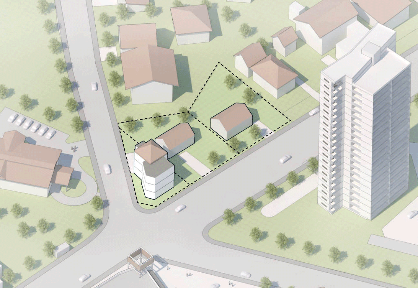 Together with a 68-meter residential tower across the street, the new 30-meter structure creates a prominent gateway to the city of Graz. The buildings serve as visual catalysts, connecting the towering skyscraper with the surrounding smaller homes. Architectural elements like slanted roofs and vertical accents blend harmoniously with the urban context.