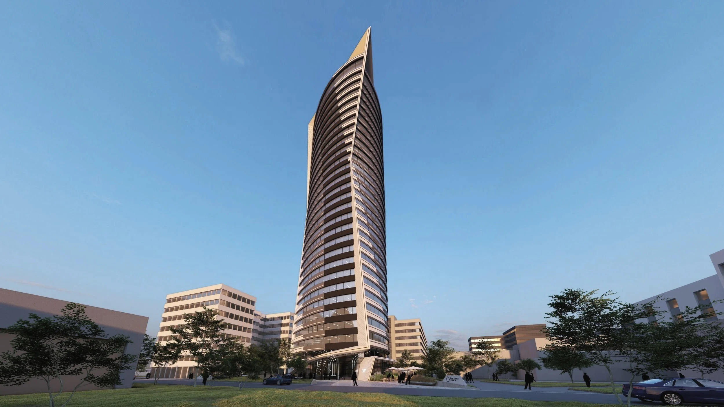 Located at the top of the 100m tower, the Sky Bar offers a stunning 360° view of the surroundings. The space is characterized by futuristic aesthetics, with metal folding wings enveloping the ceiling and walls. The central focus is the circulation area and bar counter, creating a dynamic and cutting-edge atmosphere.