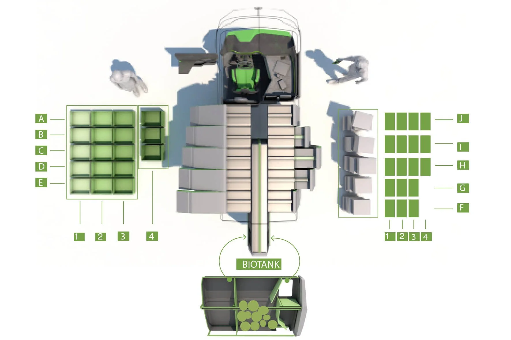 Delivery System: Each storage drawer has an assigned digital address, simplifying order management via a VW tablet interface.