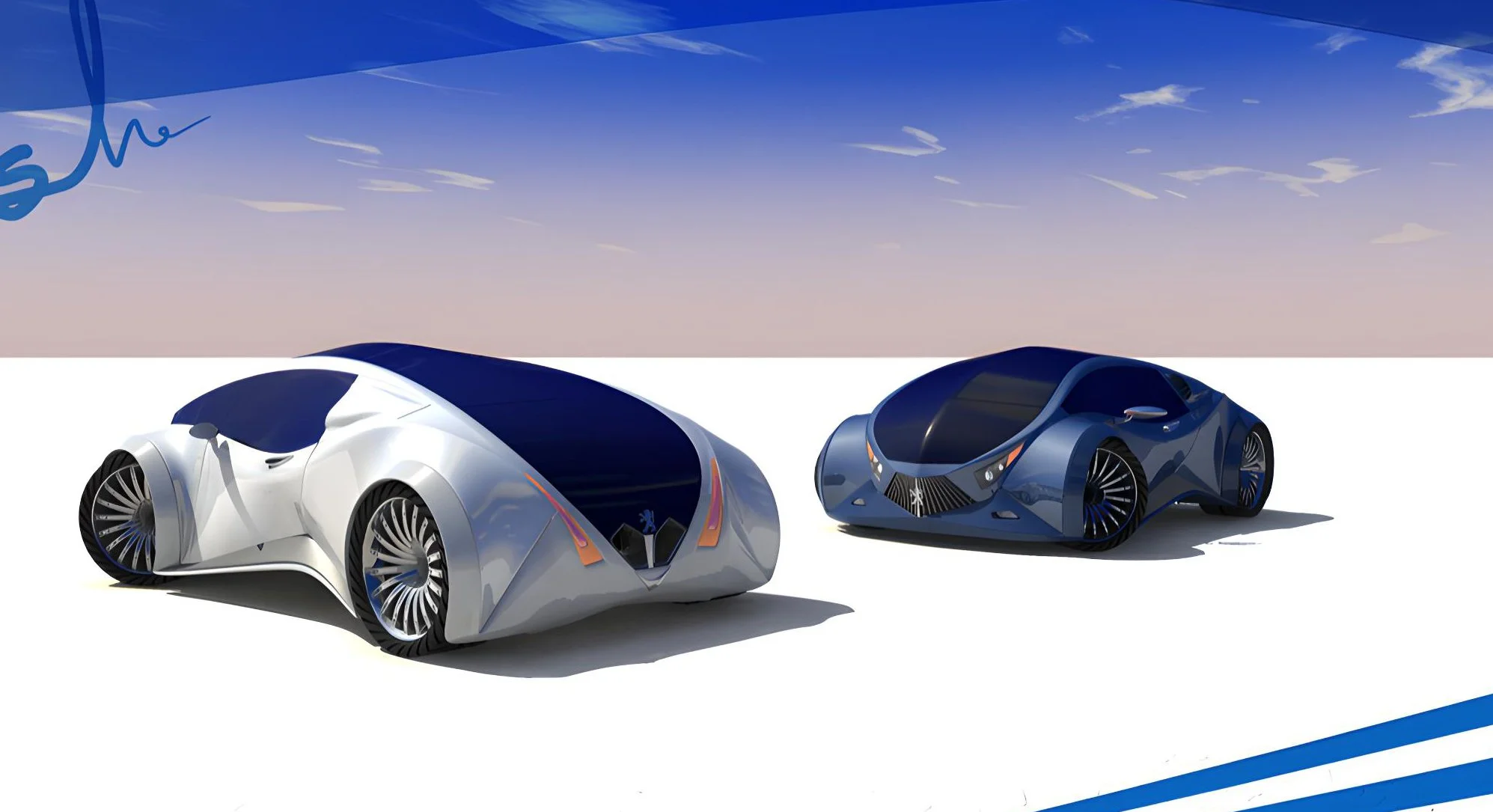 The Peugeot Fish is an electric coupé concept that blends a futuristic vision with timeless elegance. Characterized by a sleek, sporty exterior and a panoramic glass roof, the design emphasizes both performance and sustainability.