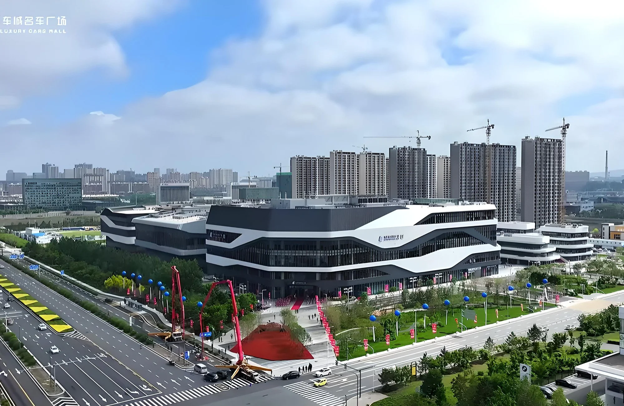 The East Luxury Car City is the largest automotive trade hub in northern China, designed as a dynamic ecosystem of interconnected buildings. It serves as a complete car-centric destination.