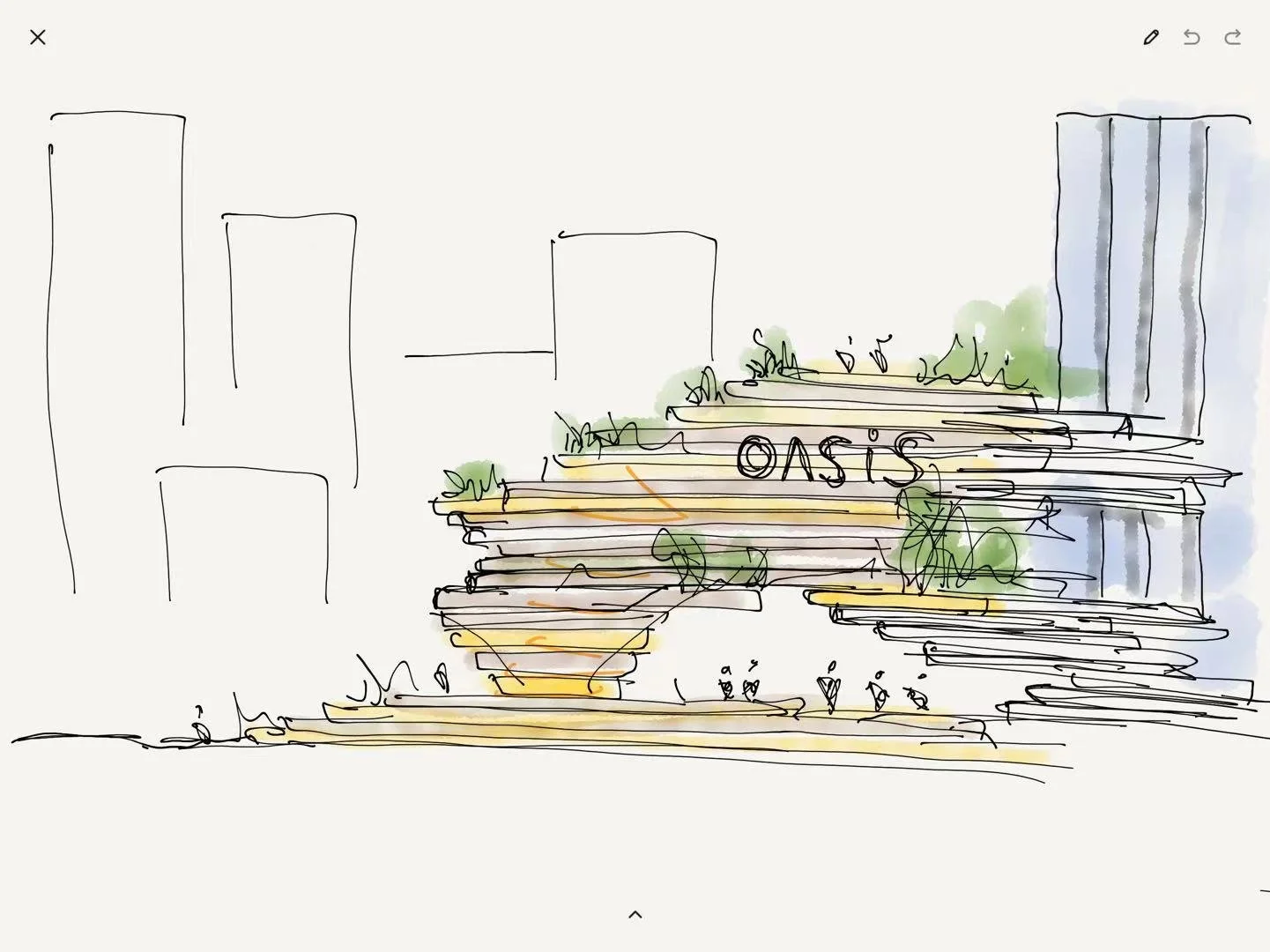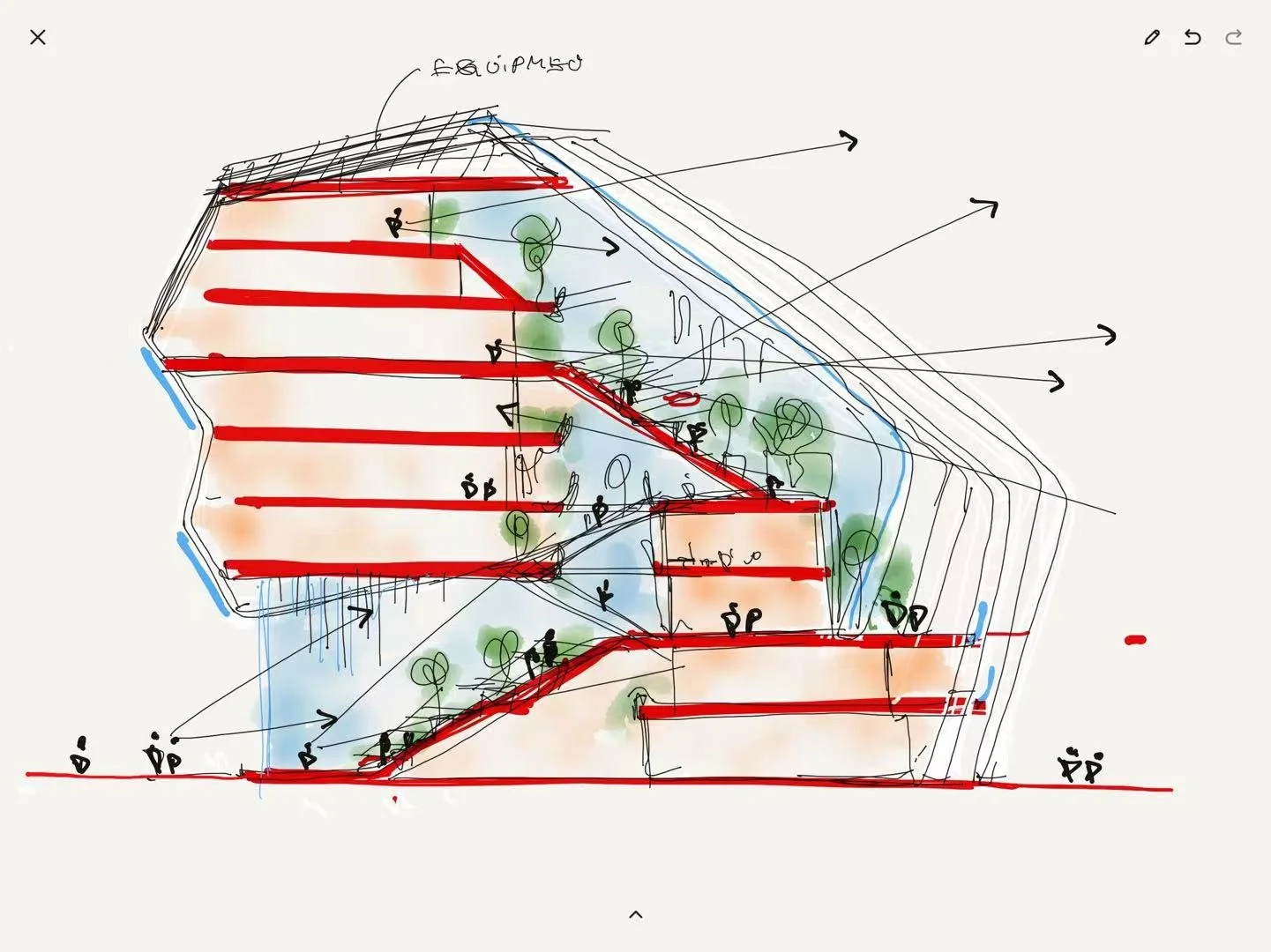 Sketching: Using tools like Paper and Sketchbook on iPad, we refine ideas through iterative sketching over 3D model screenshots.